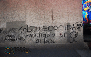 ¡Ecocidas! fue uno de los mensajes pintados con aerosol el pasado viernes en el mural del centro Tolzú, luego de que un mes atrás un árbol de más de dos décadas fuera talado por el ayuntamiento de Toluca a solicitud de la administración de dicho centro, con la justificación de que sus raíces rompían las tuberías de agua “desperdiciando miles de litros de agua potable”.