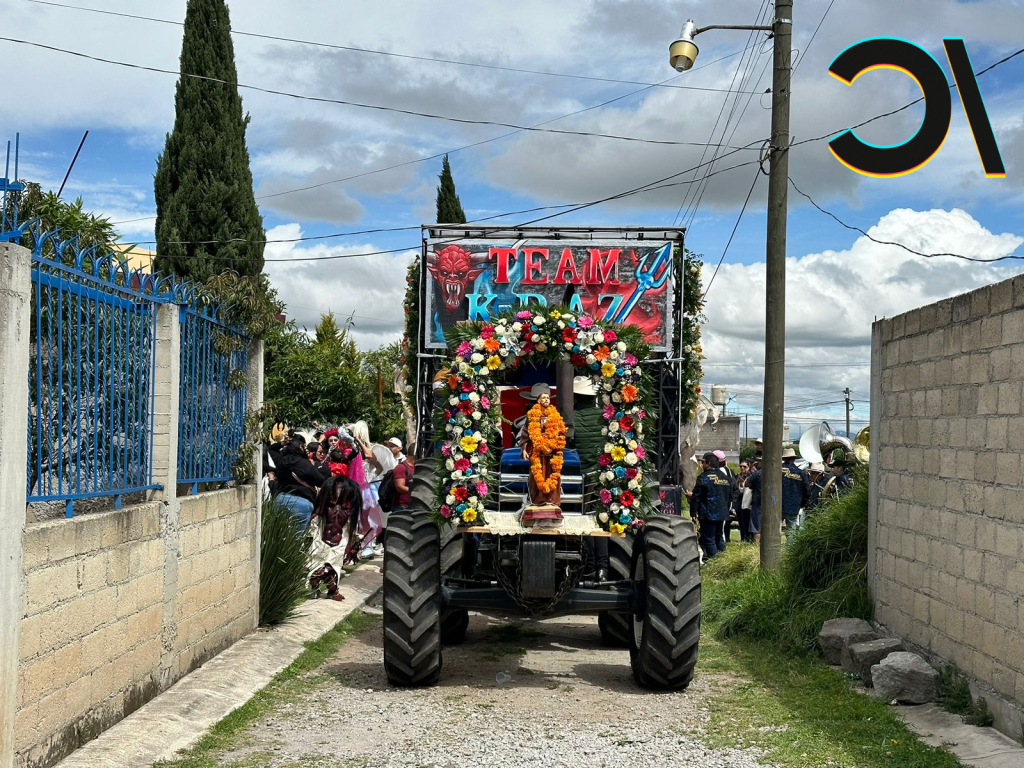 Es 8 de octubre y frente a la casa de los Mangú han estacionado el tractor que encabezará el recorrido durante todo ese día. Decenas de flores y otros artilugios decoran la máquina, que se considera una extensión viva de la celebración, listo para llevar a los más pequeños de la familia; a los músicos de grandes tamboras y a los exhaustos que deberán descansar un momento, durante el recorrido. A la altura de la caseta del tractor han colocado un cartel tan colorido como todo, que dice TEAM K-RAZ, y que se refiere precisamente al equipo que hace posible este recorrido, al que se le conoce popularmente como la Fiesta de los Locos.