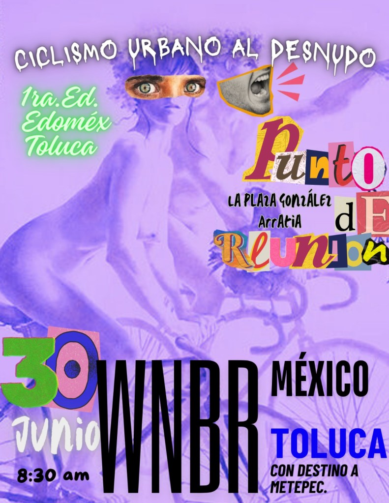 El domingo 30 junio de 2024 a las 08:30 horas, las ciudades de Toluca y Metepec, en el Estado México, por primera vez se sumarán al movimiento internacional de la Rodada Mundial Ciclista al Desnudo (WNBR, por sus siglas en inglés).