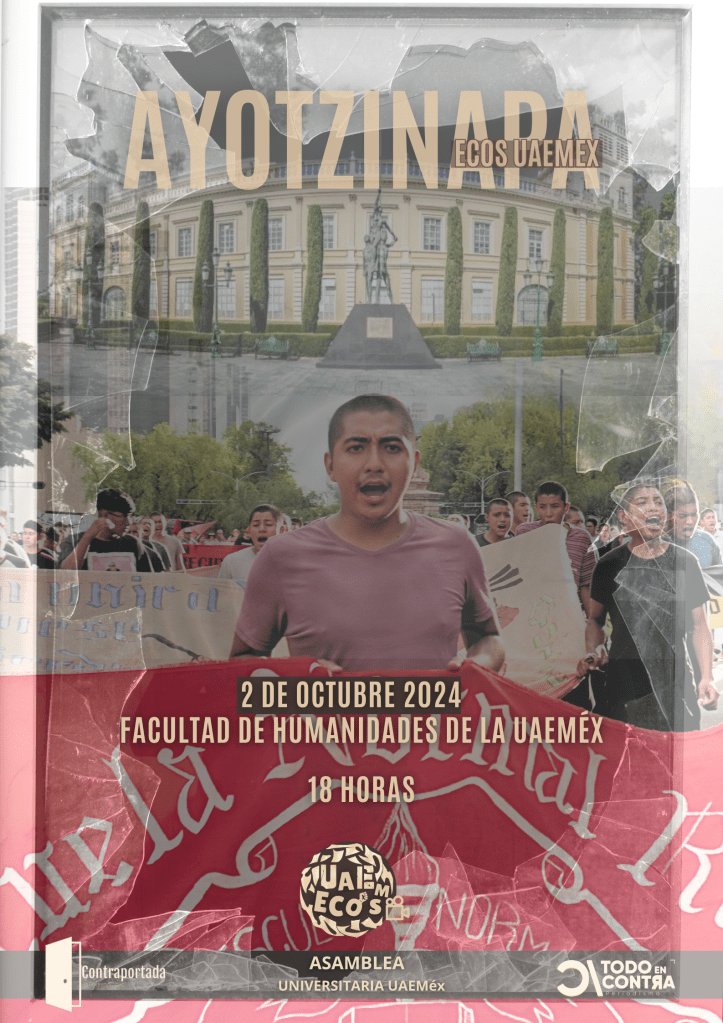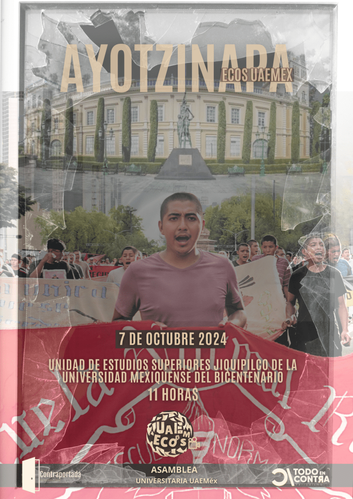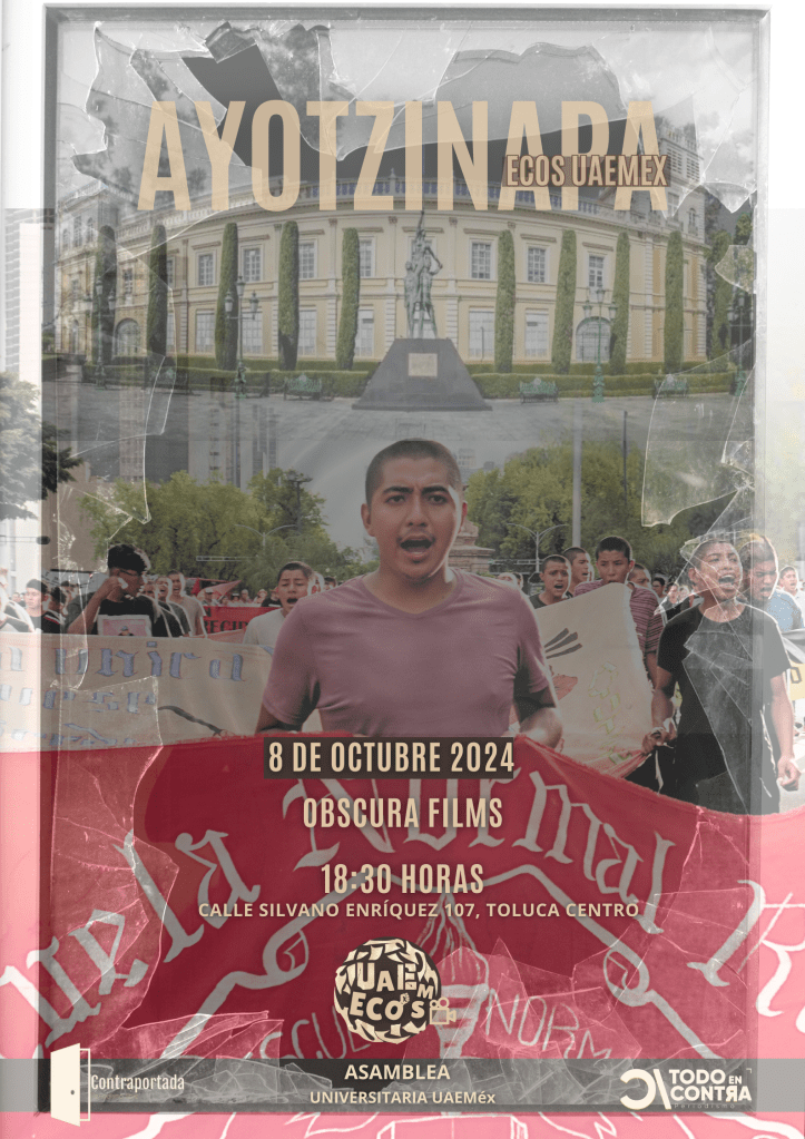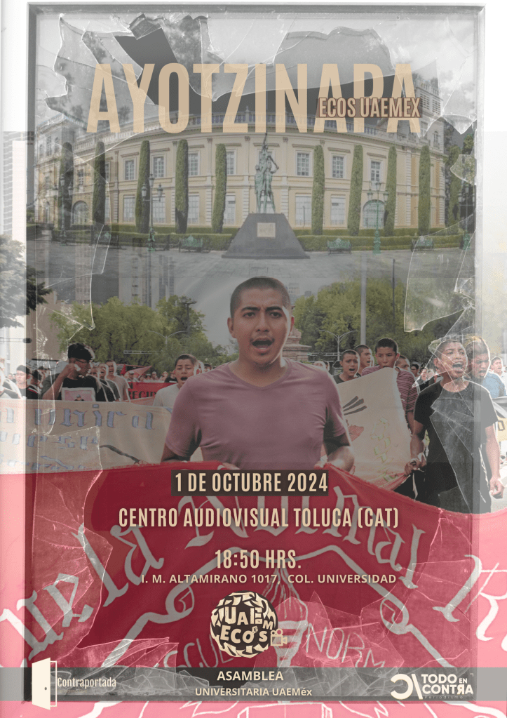 Lo anterior es el contexto en el cual se sitúa el recién estrenado documental EcosUAEMéx: Ayotzinapa, un proyecto lanzado por Todo en Contra, Contraportada y la Asamblea Universitaria UAEMéx, que busca recuperar la historia del movimiento estudiantil en la Universidad y que en su primer episodio aborda lo sucedido en la institución entre 2014 y 2016 con las luchas que desencadenó la desaparición de los 43.