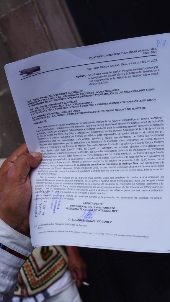 Entonces, mientras el proceso de defensa del bosque siguió y llegó a la Mañanera -espacio del ex presidente Andrés Manuel López Obrador- en dos ocasiones, los tlahuicas comenzaron a integrar la carpeta para solicitar convertirse en municipio y la entregaron el 12 de octubre de 2023 a la LXI Legislatura mexiquense.