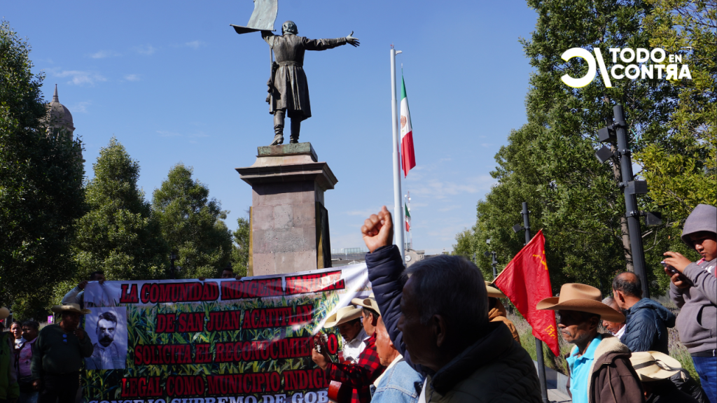 San Juan Acatitlán es un pueblo náhuatl con más de 19 mil habitantes que ha sostenido una lucha por la autonomía que data de décadas, pero que se ha fortalecido en los últimos cuatro años con el apoyo de otros pueblos y el apoyo del INPI. Su organización comunitaria se basa en usos y costumbres como la elección de delegados a mano alzada y la restricción para que tierras comunales sean adquiridas únicamente por quienes se casen con miembros de la comunidad, previo aval de la asamblea.