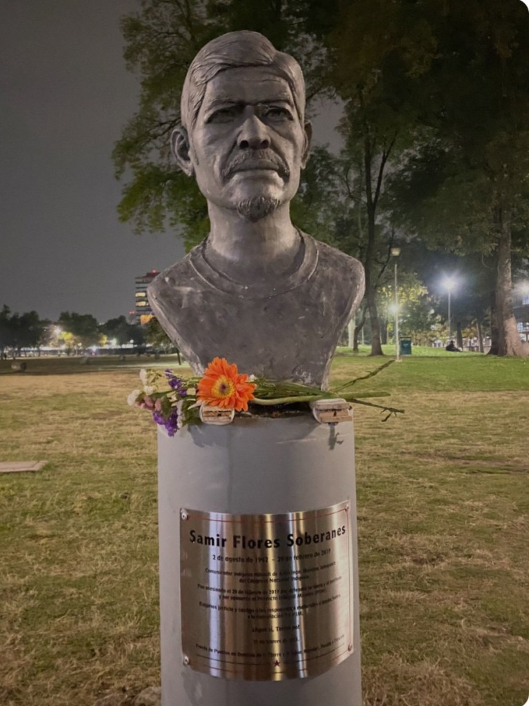 Samir Flores fue campesino, trabajó la herrería, apoyó firmemente el desarrollo de su pueblo tanto en la vida comunal como desde el activismo, que ejerció como integrante de diferentes organizaciones en la defensa de los derechos de los pueblos originarios y en defensa de la naturaleza y la tierra. Pero un destello más se sumó a su biografía: fundó una radio comunitaria, lo que dio cuenta del reconocimiento del activista de este medio de comunicación como una alternativa para llevar a otro territorio la vida comunal, pero también como un medio para la lucha. Desde la radio se exponían las demandas de la vida del pueblo, sus preocupaciones, sus acuerdos, sus fórmulas de organización, consciente de que era necesario unificar al pueblo vía una comunicación abierta y colectiva, sin una potestad empresarial mediática. Desafortunadamente, esa fue la táctica para matarlo: los asesinos lo sacaron de su casa pretextando que querían poner un mensaje para la comunidad por la radio. Cuando él salió para atenderlos lo asesinaron de tres disparos.