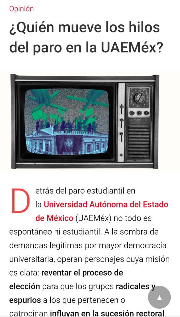Este 13 de mayo la columna de trascendidos del medio digital AD Noticias de Toluca, Estado de México, “Se dice que…”, emitió una serie de señalamientos sobre el proceso del paro estudiantil con el título de “¿Quién mueve los hilos del paro en la UAEMéx?”. Esas observaciones son parte de una continuada campaña en la que de distintas maneras ese medio de comunicación ha intentado criminalizar y enrarecer el ambiente en el que se desarrolla una lucha histórica iniciada por esa comunidad estudiantil.