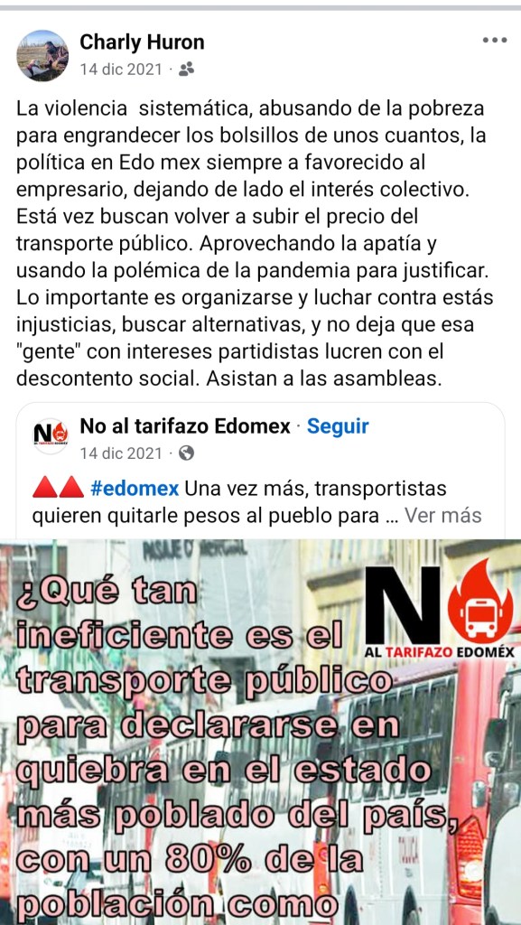 En 2020 el gobierno priista mexiquense impuso un alza al costo del transporte público. Ante eso se formó el movimiento No al tarifazo Edomex, del cual también formó parte Carlos Millán, poniendo el cuerpo y plantando cara a esta política que convalidó Morena desde la Legislatura, haciendo además denuncias en contra de los activistas que participaron en las movilizaciones.