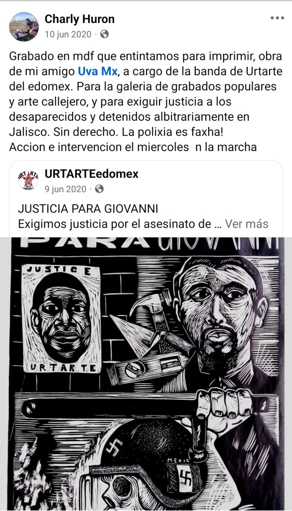 A la vuelta de su recorrido por Latinoamérica, participó en la formación del colectivo Conciencia, Crítica y Acción en 2017, proceso desde el que se articuló una movilización en contra del fraude electoral del 2018, en el Edomex, y se sumó a la resistencia contra la construcción de un paso a desnivel en Paseo Tollocan para beneficio de una entidad privada, Galerías Toluca.