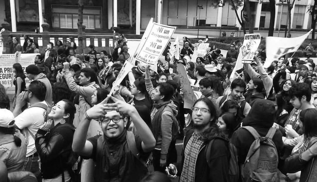 Luego, como estudiante de la Universidad Autónoma Metropolitana Lerma (UAM-L), fue parte activa de la lucha por la presentación con vida de los 43 normalistas de Ayotzinapa, contribuyendo a la organización de su escuela y a la formación de la Asamblea Interuniversitaria que vínculo a ese plantel con otras universidades como la propia UAEMéx. En ese proceso también fue parte de la formación de la Coordinadora Nacional Estudiantil.