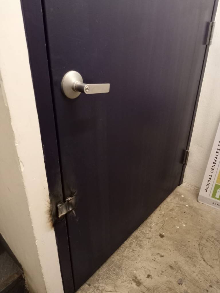 El día de hoy, al ingresar al inmueble, se constató que las únicas escaleras del edificio, que también funcionan como rutas de evacuación y salida de emergencia, se encontraban cerradas y bloqueadas, impidiendo su uso ante cualquier eventualidad. Esta situación pone en riesgo inminente la integridad física de todas las personas en el edificio, considerando además que los elevadores tienen constantes fallas y no son una opción viable ni segura para evacuaciones.