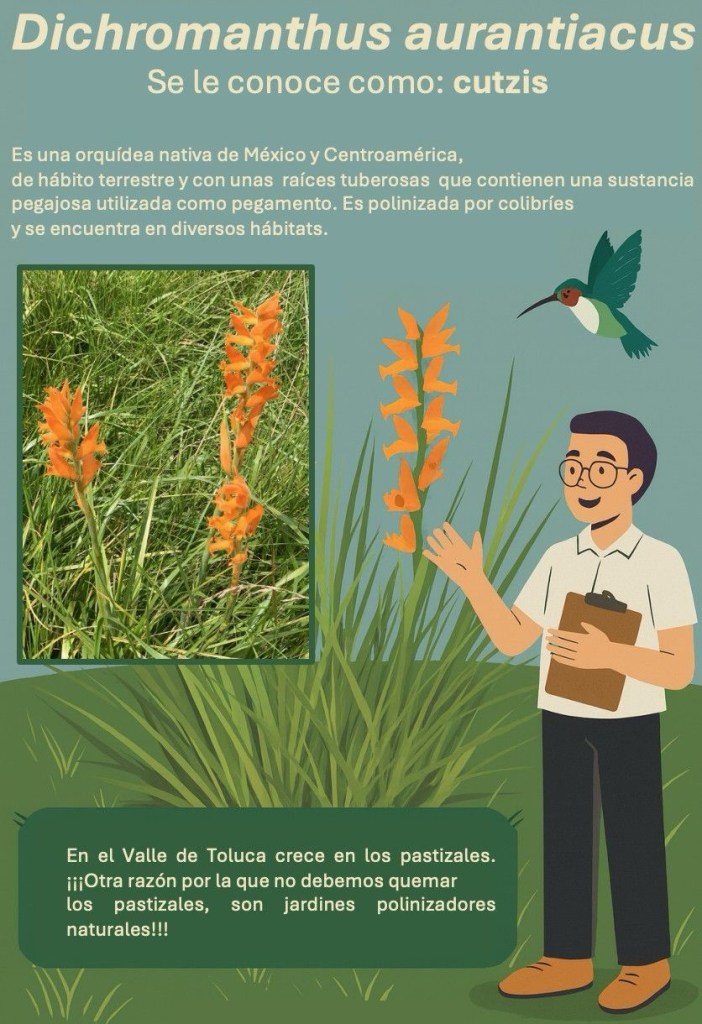 Entre las especies documentadas por los investigadores destacan las Bidens odorata, Cosmos bipinnatus, Salvia reptans, la orquídea Dichromanthus aurantiacus (polinizada por colibríes), Stevia viscida, Tagetes micrantha, Oenothera rosea, Tinantia erecta, Cuphea aequipetala, Lupinus montanus y Dalea leporina, entre muchas más.