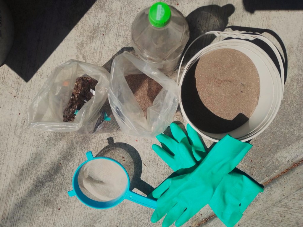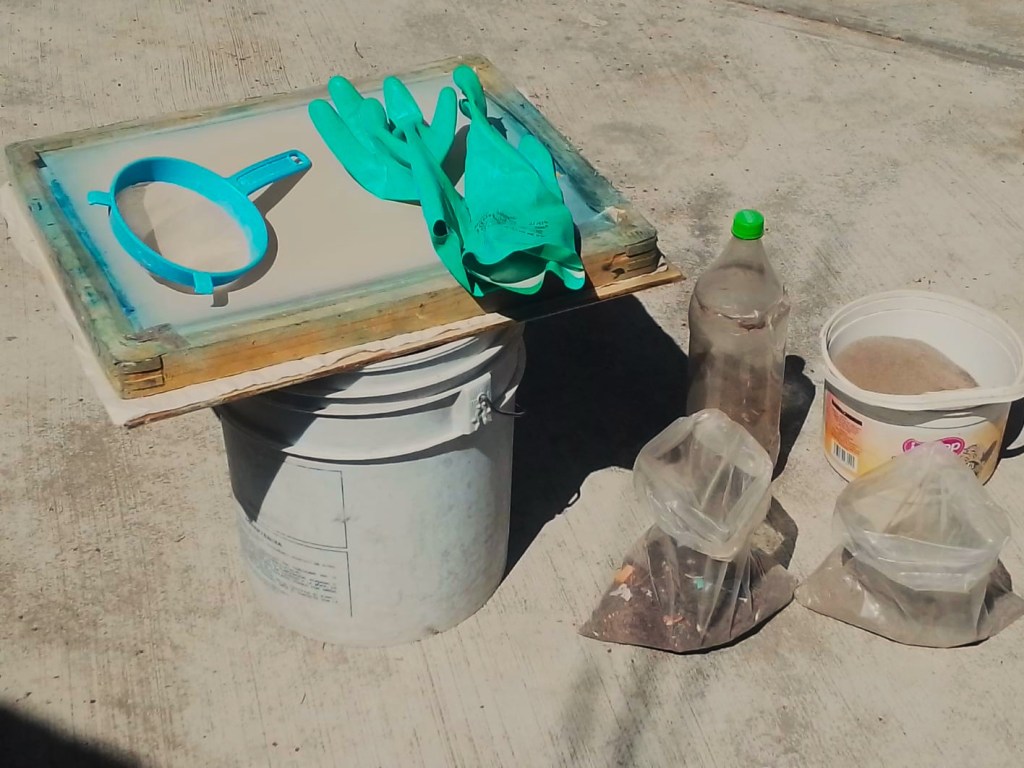 Durante meses juntó cerca de cinco kilos de polvo. Luego, en las tardes, lo trabajaba pacientemente: lo cernía, separaba basura y residuos hasta convertirlo en un pigmento fino ideal para preparar pintura.