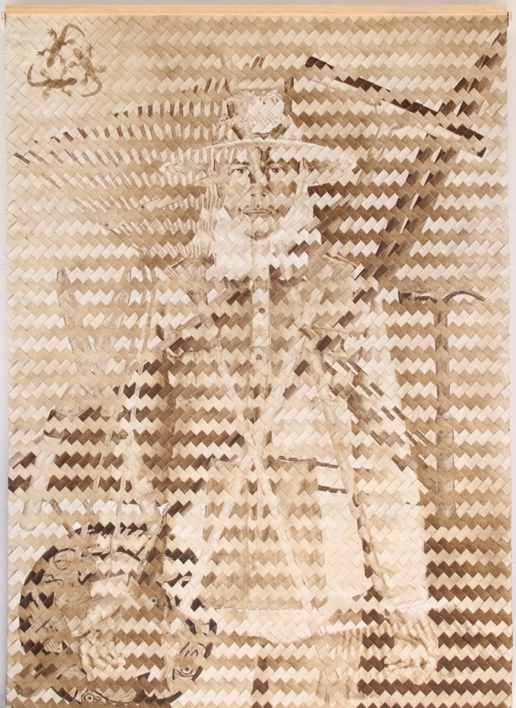 La obra —un autorretrato tejido como petate y elaborado con pigmento obtenido del polvo de los salones— fue seleccionada para el primer premio de adquisición, destacando por su carga simbólica y su profunda lectura social.