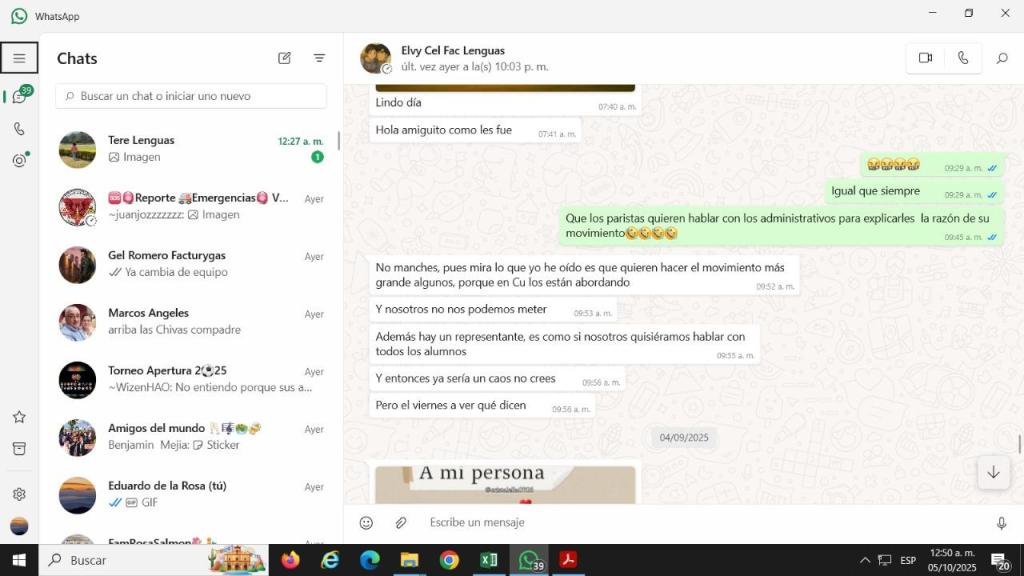 En estos intercambios se emiten comentarios cargados de desprecio, hostilidad y mofa hacia estudiantes que han participado activamente en el movimiento estudiantil. El contenido de los mensajes revela un discurso violento que trivializa y desacredita las exigencias del alumnado, además de dejar al descubierto una postura autoritaria y vertical, donde los estudiantes son tratados como estorbos o subordinados sin voz legítima.